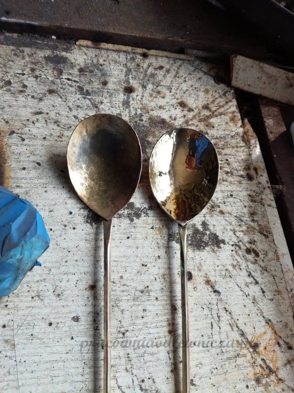 Łyżki z terenuWrocławia: konstrukcja odmienna od tych z Angli. Były zrobione z 2 - 3 elementów czerpaka wyklepanego z blachy i tronu z zwieńczeniem - głowicą. Trzon do czerbaka był dolutowany. Taką konstrukcję ma pracowniaodlewnicza łyżka XV wiek.